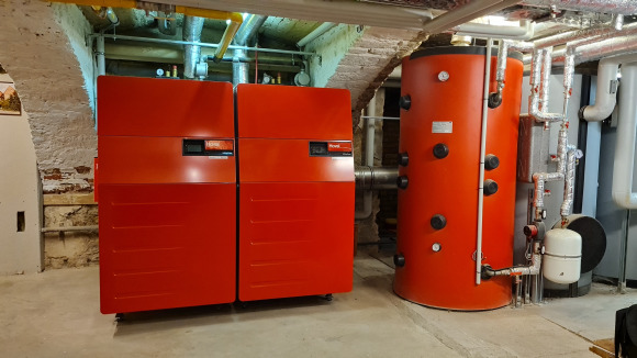 Die Burganlage aus dem 12. Jahrhundert in Warberg in Niedersachsen beherbergt unterschiedlichste Räumlichkeiten: die Tagungs- und Seminarräume der Akademie der Agrarhandels- und Futtermittelbranche, Festsäle für Hochzeiten und andere Feierlichkeiten, ein Restaurant sowie ein Hotel mit 59 Zimmern und Suiten. Um den Gästen stets das beste Ambiente zu bieten und immer auf dem neuesten Stand der Technik zu bleiben, werden laufend Schritte zur Verbesserung der Anlage gesetzt. Im Sommer 2021 stand die Sanierung der Heizung an. Die alte Ölheizung arbeitete längst nicht mehr effizient und auch die zusätzliche mobile Holzpelletsanlage lief nicht zufriedenstellend – eine neue Strategie zur Energieversorgung war gefragt.