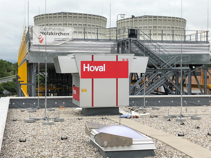 Das 140 Grad Celsius heiße Thermalwasser wird aus 4.800 Metern Tiefe in das Kraftwerksgebäude gepumpt. Die hohe Temperatur des Thermalwassers sorgt trotz normgerechter Dämmung aller Anlagenteile für ein warmes und stickiges Klima. Eine professionelle Lüftungsanlage ist für die Halle daher essenziell. Pro Stunde bringen die Hoval RoofVent Geräte rund 27.000 m3 Frischluft in die Halle ein und sorgen durch die stetige Umwälzung für ein angenehmes Hallenklima. Die leistungsstarken RoofVent Geräte haben eine große Reichweite; dadurch sind auch in weitläufigeren Hallen nur wenige Geräte nötig, um die gewünschten Bedingungen zu schaffen. Im Winter wird die Luft konstant bei 19 Grad Celsius gehalten.
