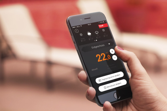 Wenn Sie von unterwegs die Heizung bedienen und zum Beispiel die Temperatur höherstellen wollen, können Sie das schnell via Hoval App auf Ihrem Smartphone tun.