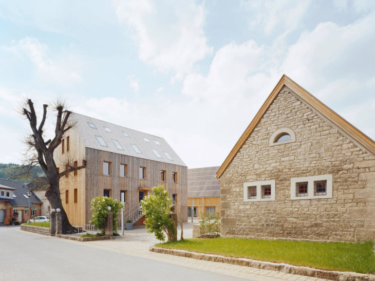 Das einstige Wohnhaus ist jetzt ein Bürohaus, und die benachbarten landwirtschaftlichen Gebäude dienen nun als Hebammenpraxis und als Wohnhaus mit zwei Mietwohnungen.