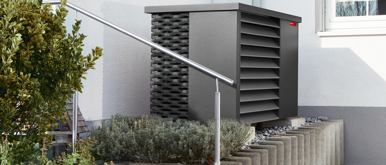 Die neue Hoval Wärmepumpe ist leise, spart Platz und sieht gut aus.