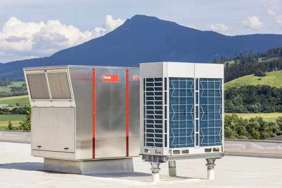 Dezentrale Hallenklima-Systeme setzen auf hocheffiziente Wärmepumpen, die Heizen und Kühlen mit demselben Gerät ermöglichen.