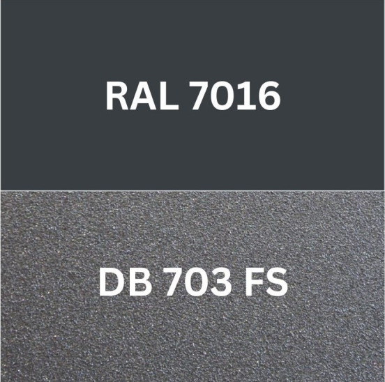 Im Vergleich wird der Farbunterschied zwischen RAL7016 und DB 703 FS sichtbar.