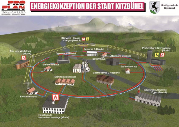 Zu den weltbekannten Abhängen soll jetzt in der kleinen Stadt ein Ring kommen – ein Fernwärmenetz mit einer ringförmig verlaufenden Hauptleitung, an welche öffentliche und private Gebäude angeschlossen werden sollen. Als Wärmelieferanten angedacht sind kleinere Heizzentralen, die mit fünf unterschiedlichen Energiequellen arbeiten: mit Holz, Bioabfällen, Abwasser, industrieller Abwärme und Erdwärme.