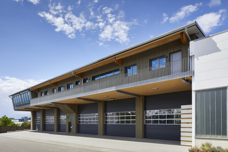 Die Rikker Holzbau GmbH in Affalterbach setzt seit 1879 auf die richtige Mischung aus traditioneller Handwerkskunst und rationellen Fertigungsmethoden. Über sechs Generationen hinweg hat sich das Familienunternehmen zu einem der leistungsstärksten Partner in der Region entwickelt. Seit Anfang 2019 ergänzt ein modernes KfW-Effizienzgebäude, das genau definierte Standards in Sachen Energiebedarf und Wärmeverlust erfüllt, das Betriebsgelände des Unternehmens. In der befahrbaren Halle lagern derzeit die täglich auf den Baustellen benötigten Materialien wie Dämmung, Latten, Folien und Bauholz. Im Gebäude befinden sich außerdem Bauleiterbüros und Sozialräume. Die rund 1.500 m2 große Halle soll in einigen Jahren von einer Lager- in eine Produktionshalle umfunktioniert werden. Die Heiztechnik von Hoval ist auch dafür bereits ausgelegt.