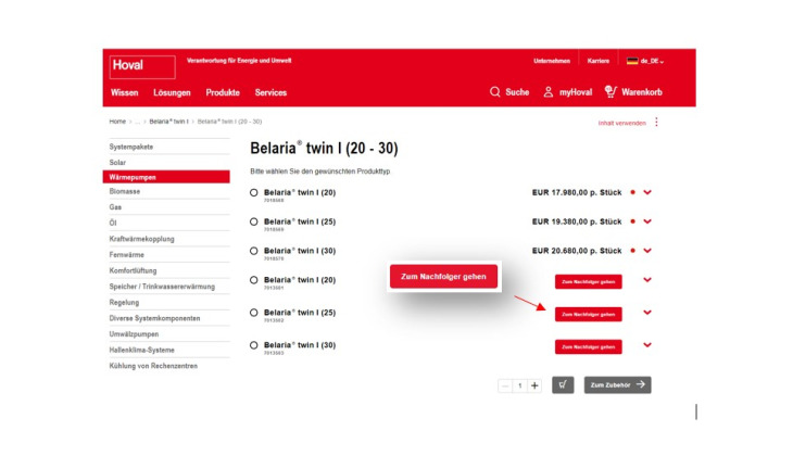 So können Sie mit nur einem Mausklick direkt das Nachfolger-Produkt bestellen.