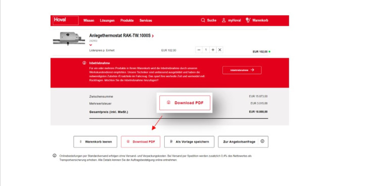 Diese Neuerungen gibt es bei myHoval - Warenkorb