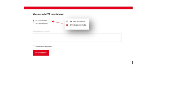 - Sie können nun auswählen, ob Sie das PDF inklusive oder exklusive Geschäftsrabatte downloaden wollen.