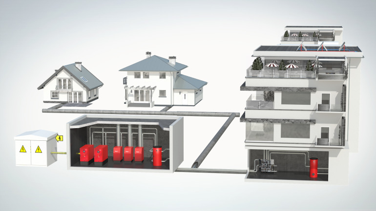 Blockheizkraftwerk 43 - 530 kW elektrische Leistung und 65 - 687 kW thermische Leistung | Rentable Strom- und Wärmeproduktion für mittelgroße und große Objekte sowie im Nahwärmeverbund.