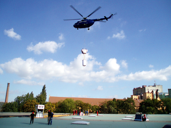 Montage der Unter- und Überdacheinheit mittels Hubschrauber