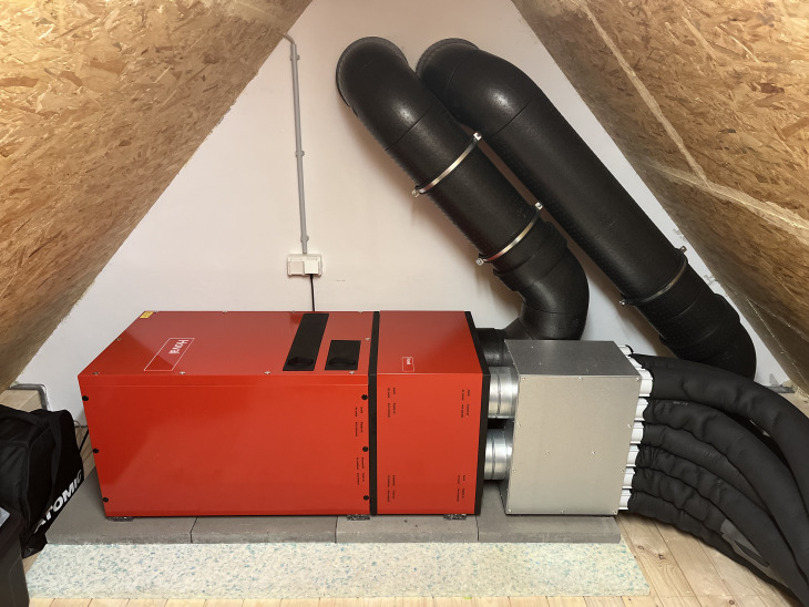 Hybridanlage für den Altbau: Einfamilienhaus mit Luftwärmepumpe, Pelletofen und Komfortlüftung ausgestattet