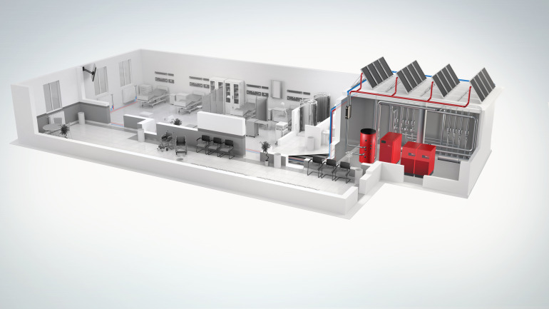 Spitäler, Krankenhäuser und Pflegeeinrichtungen etwa für ältere Menschen haben hohe Ansprüche. Die Hoval Systemlösungen liefern zu jeder Tages- und Nachtzeit die gewünschte Raum- und Prozesswärme – und auch Warmwasser in großen Mengen und in hoher hygienischer Qualität. Die ausgereifte Technologie von Hoval schließt die Gefahr von Legionellen aus. Dafür macht sie es möglich, erneuerbare Energie in diese Gesamtlösungen einzubeziehen und deren Leistung etwa bei der Aufstockung eines Gebäudes zu erhöhen.