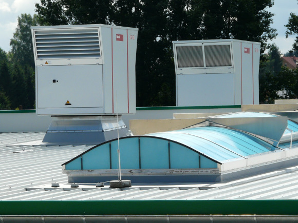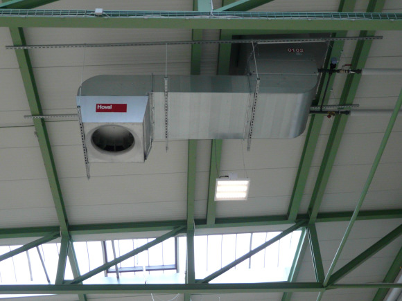 Das RoofVent sorgt für die bedarfsgerechte Lüftung in hohen Hallen mit stufenlos regelbaren Ventilatoren und beinhaltet einen hocheffizienten Energierückgewinner sowie ein Heizregister zum Nachheizen der in den Raum eingebrachten Luft. Durch die effiziente Luftverteilung und der Leistungsstärke des RoofVent ist eine hohe Reichweite garantiert. Im Vergleich zu anderen Anbietern sind also dementprechend werden für die Be- und Entlüftung weniger Geräte benötigt, um die gleichen Bedingungen zu erreichen.