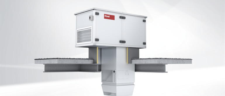 Das Hoval TopVent SH Adiabatik wird genau wie das TopVent SH auf dem Dach installiert. Das bringt einen großen Vorteil mit sich. Die Wartungsarbeiten am Gerät werden jeweils über das Dach ausgeführt, so dass der Betriebsablauf in der Halle nicht gestört wird. Aufgrund seiner Bauart als Dachgerät ragt es nicht weit in die Halle und benötigt nicht viel Platz in der Halle.