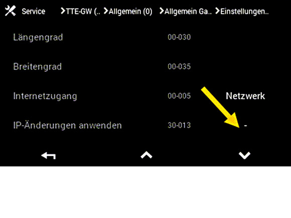 In der Linie Internetzugang klicken Sie auf den Parameter rechts (zeigt beliebigen Text an).