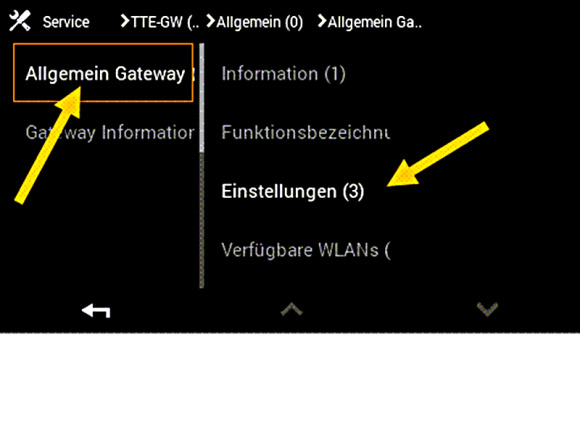 Klicken Sie unten rechts auf den Pfeil um auf die 2. Seite mit Einstellungsmenüs zu gelangen.