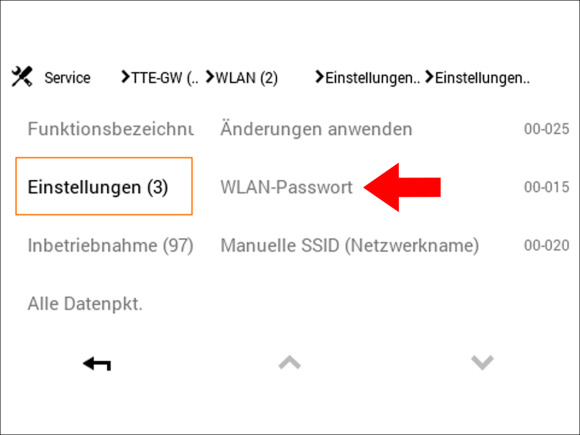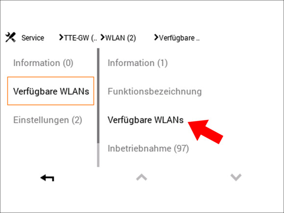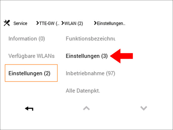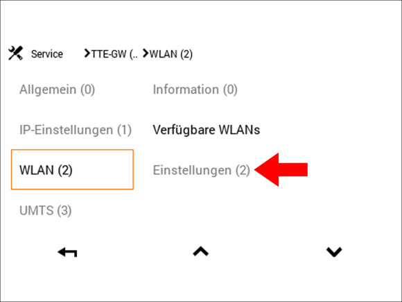 Hinweis: Sollte die Option "TTE-GW" nicht direkt sichtbar sein, klicken Sie auf die Pfeiltaste unten rechts um nach unten zu scrollen bis der Menüpunkt "TTE-GW" angezeigt wird.
