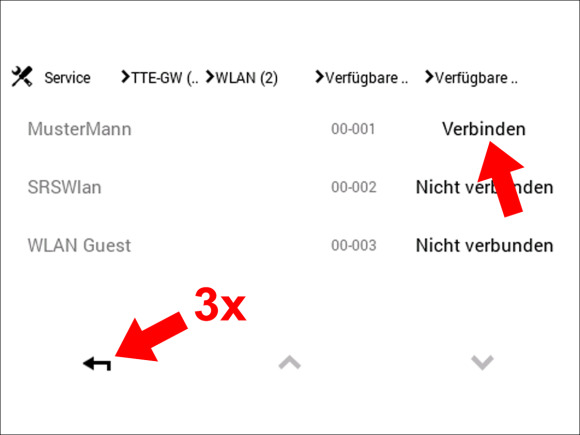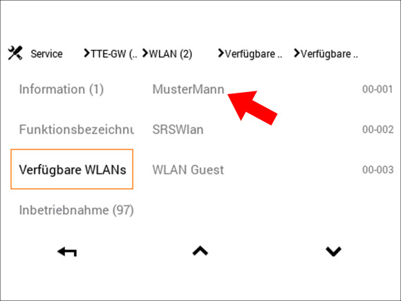 Hinweis: Sollte Ihr Wunsch WLAN nicht direkt sichtbar sein, klicken Sie auf die Pfeiltaste unten rechts um nach unten zu scrollen bis Ihr Wunsch WLAN angezeigt wird.