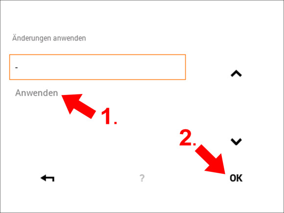 Prüfen Sie ob in der Zeile "Änderungen anwenden" rechts die Bezeichnung "Anwenden" angezeigt wird. Klicken Sie nun abschliessend links unten 6x auf die "Zurück" Taste um auf den Home Bildschirm zurückzukehren.