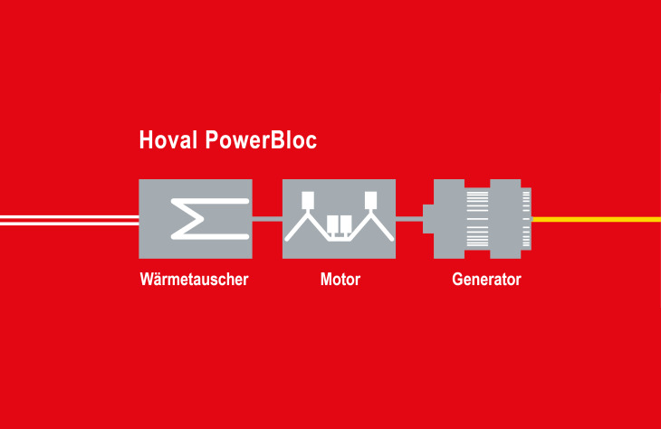 PowerBloc-Blockheizkraftwerke sind ein Beispiel für Anlagen zur Kraft-Wärme-Kopplung. Sie bestehen aus einem Verbrennungsmotor, einem Generator, einem Wärmetauscher und einem Fernsteuerungssystem. PowerBloc-Blockheizkraftwerke gehören zur Kategorie der Anlagen zur dezentralen Stromerzeugung. Sie erzeugen elektrischen Strom und Wärme nahe beim Verbraucher. Nur so lassen sich sehr hohe Primärenergie-Wirkungsgrade von bis zu 90% erzielen. Konventionelle Großkraftwerke erreichen im Vergleich dazu nur Primärenergie-Wirkungsgrade zwischen 30 und 50%. Der Rest geht als Abwärme verloren. PowerBloc-Blockheizkraftwerke nutzen die Abwärme beispielsweise für die Heißwasserbereitung oder als Prozesswärme für Industrieanlagen. Die erzeugte elektrische Energie wird direkt im Gebäude verbraucht oder kann oft gegen Bezahlung ins öffentliche Netz eingespeist werden.